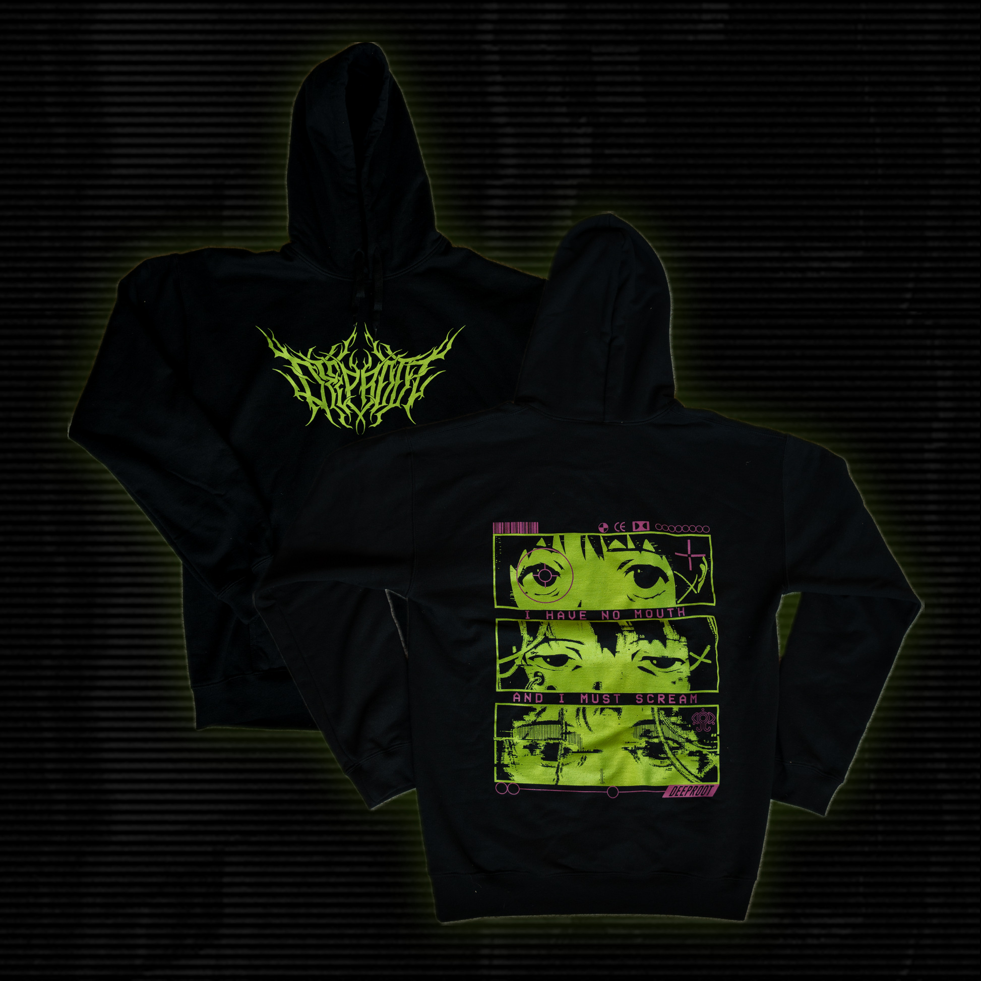 "Experiment lain” Hoodie with a front and back print, printed on a black unisex hoodie.